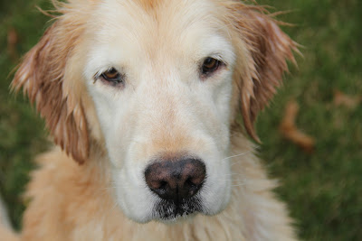 Scout - My mischievous paper eater...at bath time is like a lamb being led to the slaughter. He sits there with the saddest puppy dog eyes, not daring to move until I gently encourage him to stand to finish the rinsing. He patiently waits while I dry him off and lets me lead him into the house all nice and clean yet.
