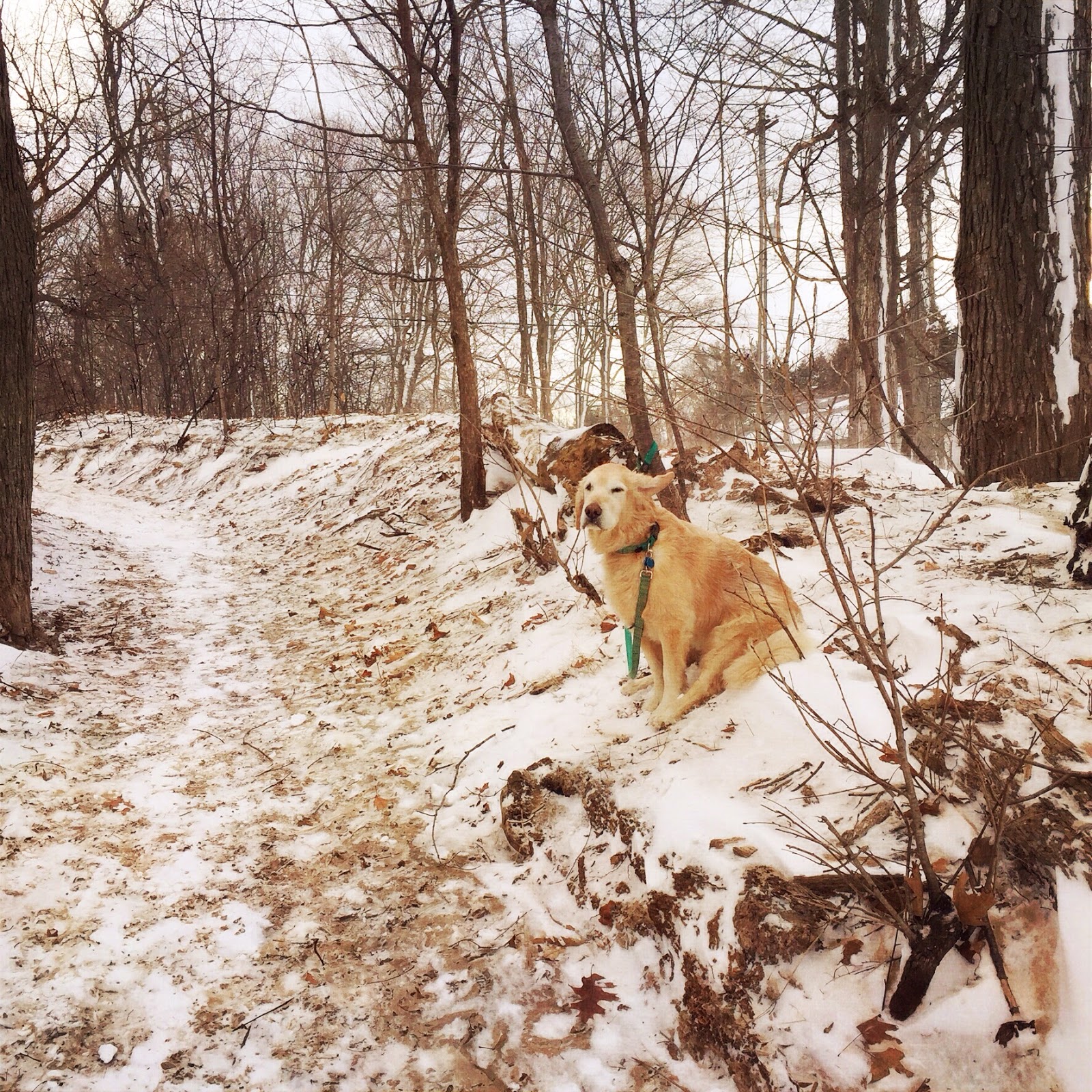I found a dog not to happy to be tied to a tree while I climbed through some snow drifts to get down to the beach and Lake Michigan. I was only thinking of him and his old dog hips.