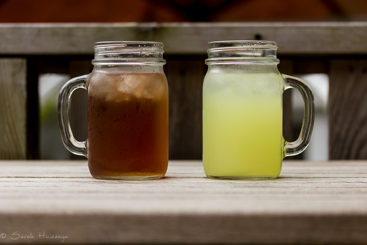 By this time it was near two o'clock and we were getting hungry and definitely thirsty. We thought we would stop at the cozy on-site cafe for some lemonade and iced tea before hitting the road for our late lunch/early supper at The Stray Dog. Our very friendly waitress seated us outside on the patio, and then proceeded to tell us about the special of the day, a house made veggie burger on a pretzel bun. I love anything on a pretzel bun, so it didn't take too much convincing for us to decide to stay in this lovely, quiet spot for lunch and save The Stray Dog for another day.